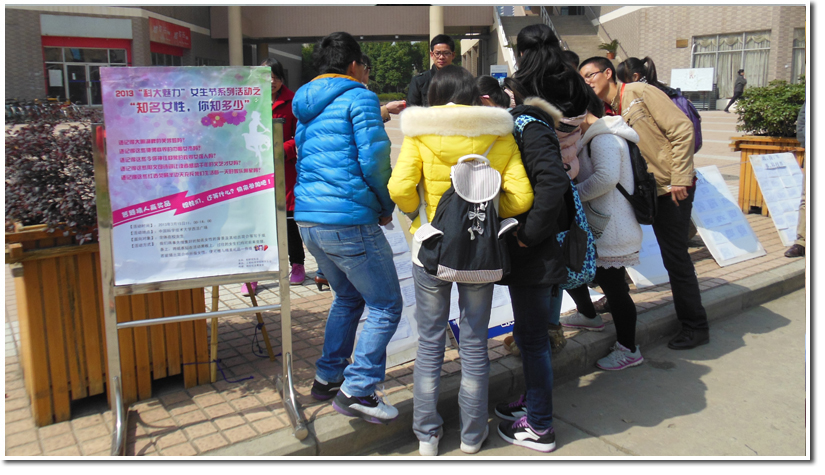 此次活动中,我们发现在校的同学们特别是女同学对于知名女性的知识有足够多的了解,大家平时对知名女性的事迹还是相当关注的。通过参与此次活动,女生们又进一步拓展了自身的知识面,激发了其平常学习科研的积极性,促使其向著名女性学习,努力安排好自己的人生道路