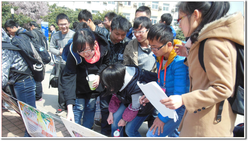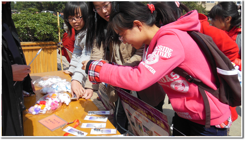 十一点左右活动开始,同学们积极参与到我们的现场活动中来,女生们对这种竞猜模式的有奖问答表现了很高的兴趣。参与活动的女生有的随口说出了答案,有的经由我们工作人员的引导,认真的思考着答案。