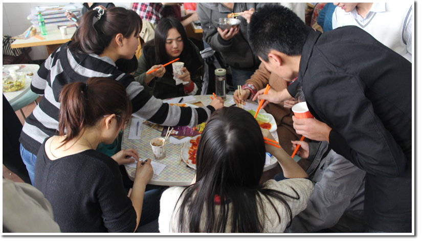 经过激烈的角逐,温攀月、潘颖组成的twins组合最终技压群雄,问鼎本次大赛的“食神”。在一片欢笑声中,本次食神大赛落下了帷幕。我们相信会有更多同学在搞得好学术的同时,也勇敢地向厨房进军。“上得课堂,下得厨房”将不再只是口号。