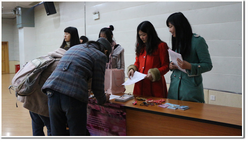 下午六点左右,同学们陆续的进入到活动现场,并且都收到了一份小巧的美丽咨询卡,可以在美丽咨询卡上填写个人信息及个人皮肤状况,然后交予工作人员放在抽奖箱内。下午六点半,活动准时开始。首先工作人员播放了有关社交礼仪的网络视频教程,视频主讲了初次会面时的要注意的细节,例如微笑、对他人的称呼、握手方式等,老师幽默风趣的语言表达方式逗得同学们哈哈大笑,也教会了同学们很多礼仪常识。