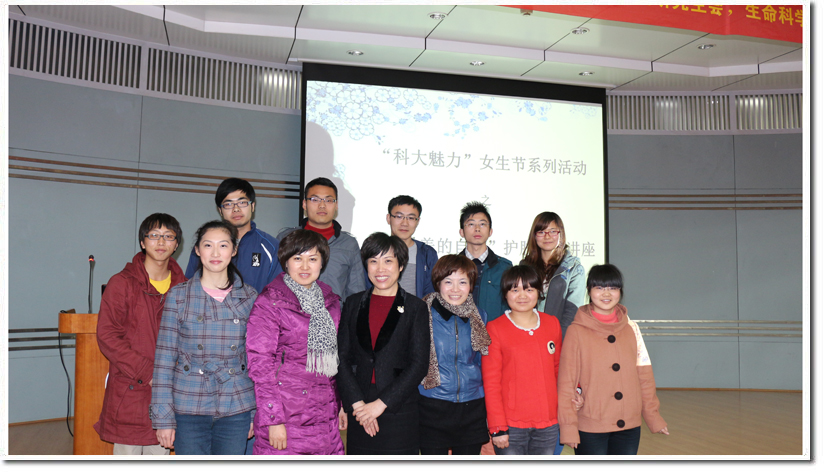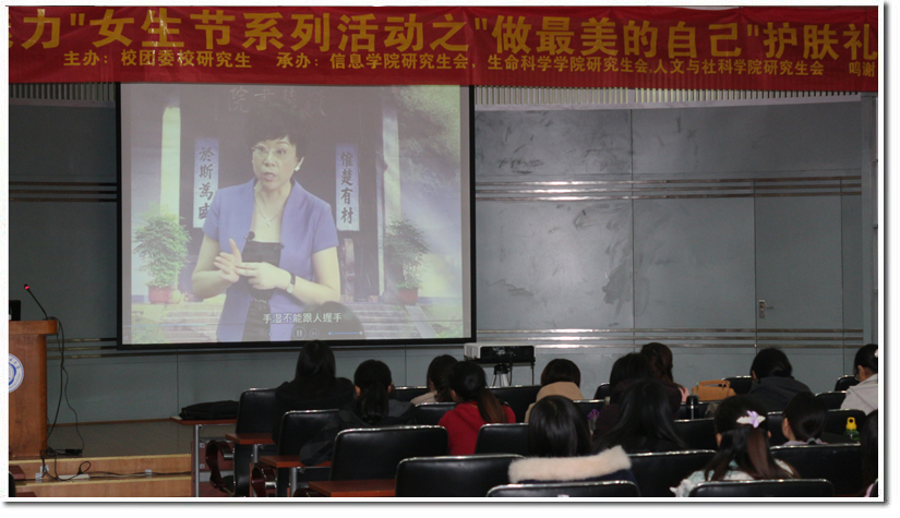 3月24日晚上18:30,“科大魅力”女生节系列活动之“做最美的自己”护肤礼仪讲座在科大西区活动中心二楼学术报告厅顺利举办。本次活动由生命科学学院团总支、信息科学技术学院分团委联合主办。现场特别邀请了玫琳凯专业护肤美容老师尹瑜的工作团队为科大女生普及护肤彩妆的知识。来自各个学院的近100名学生参加了本次活动,现场一片欢声笑语。