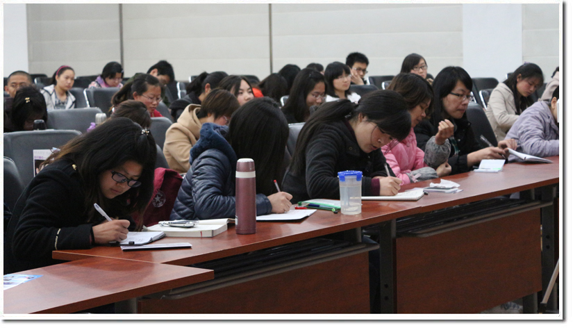 同学们认真听讲讲座,时而埋头记录尹老师所讲的知识要点,时而与老师交流,提出自己在皮肤保养护理的困惑,都得到了老师的悉心指导。