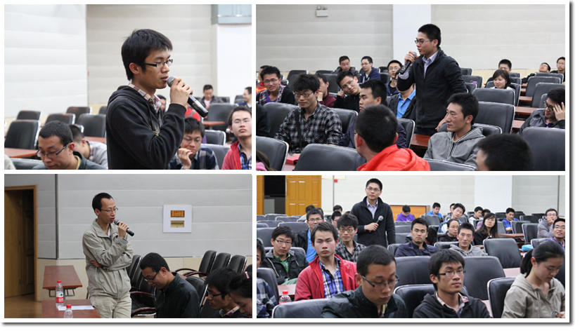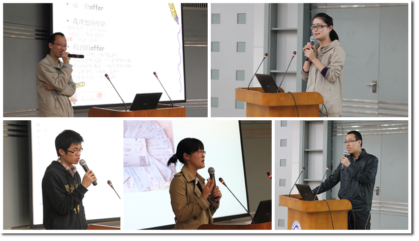 2013年4月19日晚18:30由校团委、校研究生会、招生就业处主办,工院分团委、工院研究生会承办,“所系结合”办公室协办的“求职航标”2013年工程科学学院求职经验交流会在西活二楼学术报告厅拉开帷幕。活动针对整天奔波于实验室和教室之间并对自己的职业生涯充满困惑的学生开展,同学们积极参与、热情高涨、现场十分火爆。到场的嘉宾有就业政策咨询与职业规划指导的郝心远老师、5系博士毕业生牛玉、9系硕士毕业生黄铭、9系本科毕业生陶玮玮、13系硕士毕业生朱会元、13系硕士毕业生周锦志。活动由项目组成员叶冬森主持。
