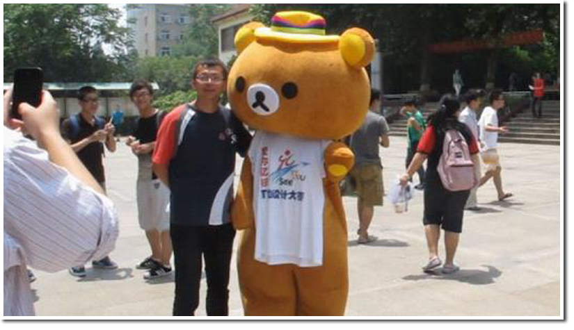 活动现场,同学们在创意十足的作品以及可爱萌萌的轻松熊的贡献下,活跃积极,不时吸引来往的同学合影留念。为我们See You系列活动增添了影响力、很好的继承和延续了T恤设计大赛品牌效应。后续项目组将采取专家评审团来对参赛作品进一步评比,并将获奖作品在See You晚会上进行走秀表演。本次现场投票在轻松熊的引领下现场气氛火爆,这样轻松活跃的工作形式得到了东西区同学们的一致好评,也为我们项目组后续的创新工作提升了积极性。