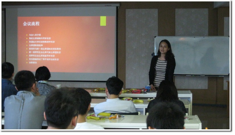 会上,前任主席龚晓冬就过去一年核学院研究生会工作的情况进行了总结,在汇报研究生会工作取得可喜成绩的同时,指出了研会发展过程中所存在的问题和不足,并分享了自己担任研会主席一年的心得和感受。