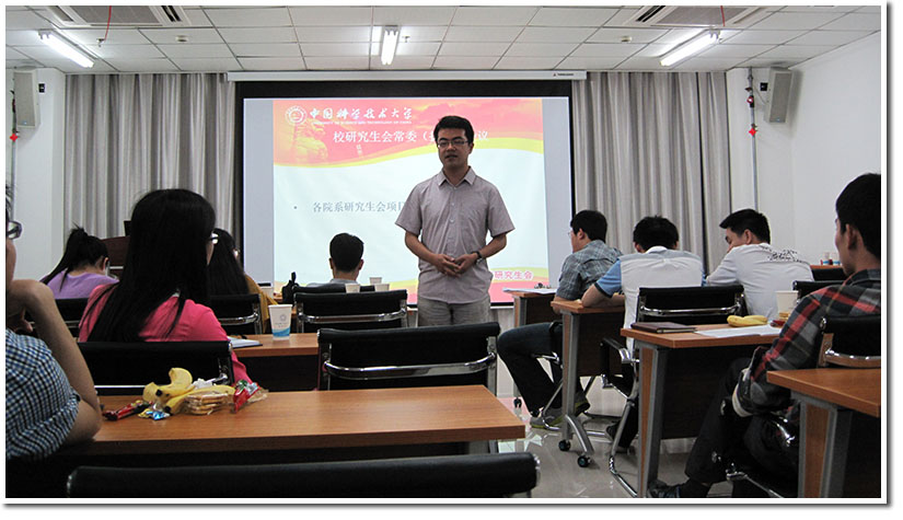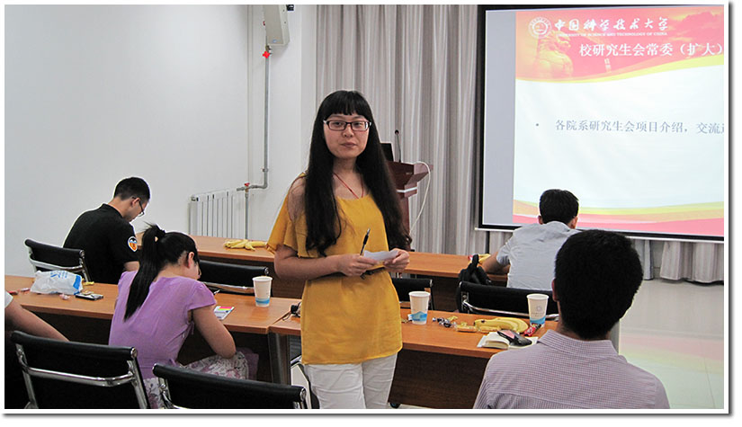 6月8日晚上,中国科学技术大学校研究生会第四届一次常委(扩大)会议暨院系主席联席会在东区环资楼939会议室顺利召开,会议由化学与材料科学学院研究生会副主席舒江南主持,校研究生会主席、副主席,各院(系直属单位)研究生会主席以及校研究生会常委参加了本次会议。