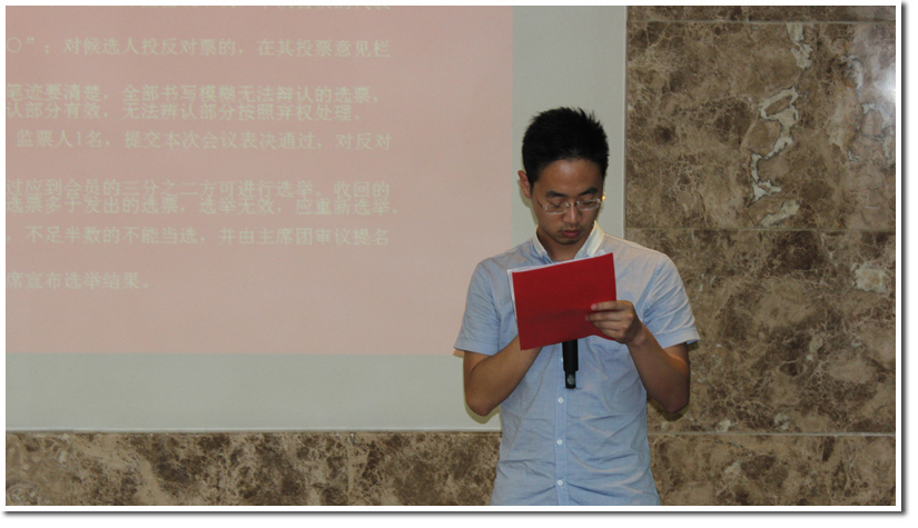 校研究生主席屈直在总结发言中,对管理学院研究生会顺利举行主席团换届表示祝贺,高度评价管理学院研究生会一直以来在密切联系校研究生会、推动与兄弟院系研究生会合作、踏实开展服务学生工作等方面取得的一系列成绩,大力赞扬管理学院研会在研会宣传工作、加强和EMBA及MBA合作等方面的创新之举,勉励选举产生的新一届主席团成员继承管理学院研究生会优良传统,迎难而上,开拓创新,争取迈向新的台阶。