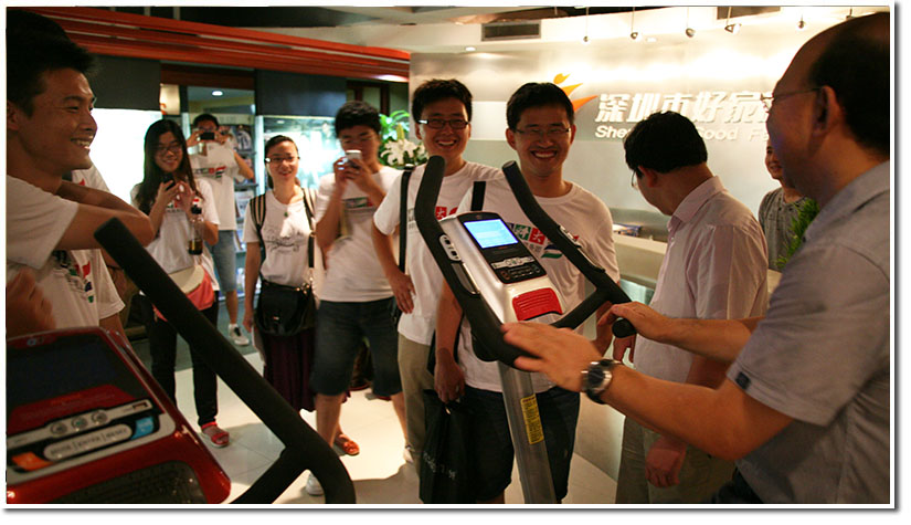 之后,张佳华校友展示了公司最新的产品,博士生团成员也亲身体验了先进的健身器材,与健身零距离,整个过程非常欢乐,受益颇多。