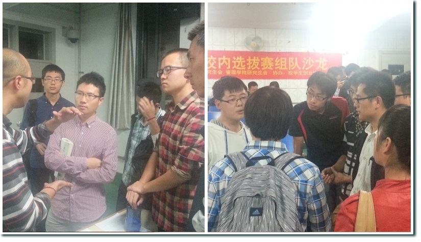 沙龙的最后一个环节是自由讨论。现场同学纷纷向有项目团队或个人的同学接近,以期找到项目,加入团队。活动现场形成了多个小区域,工作人员对每个小区域下发了团队报名表。教室内气氛热烈、热闹非凡。各区域内,成员神采奕奕,各抒己见,在项目的技术、融资、商业模式等方面交换见解与思考。新的团队陆续诞生。