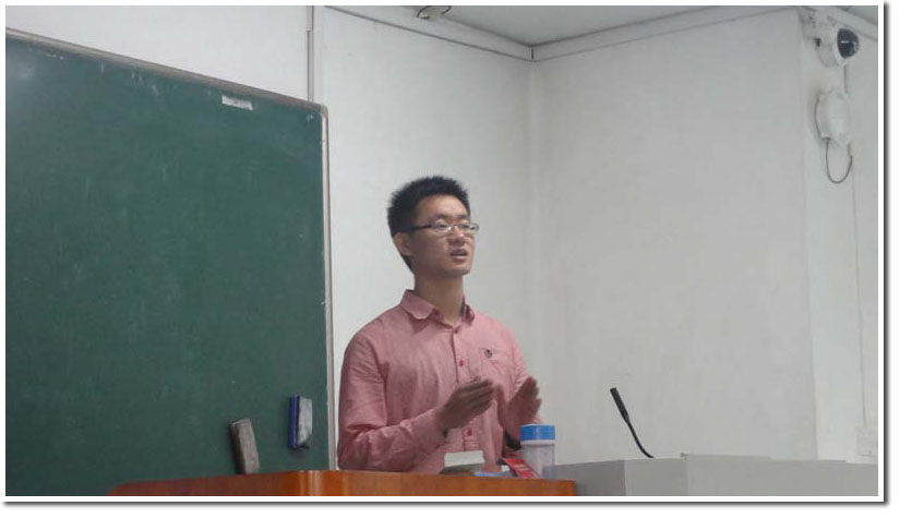 接下来,准备参加“挑战杯”全国大学生课外学术科技作品竞赛国家赛的选手王书路,向大家介绍了其参赛作品:多视角立体显示技术在古生物群项目上的应用。他从多视角立体显示技术的背景、意义、算法等方面,深入浅出地为同学们带来了一场扩展视野的科普讲座。