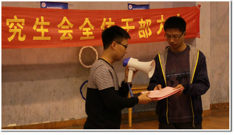 紧接着,校研究生会副主席孟德超,为全体新干部颁发了中国科学技术大学研究生会录取通知书,每位干部的通知书由各部门部长代为领取。