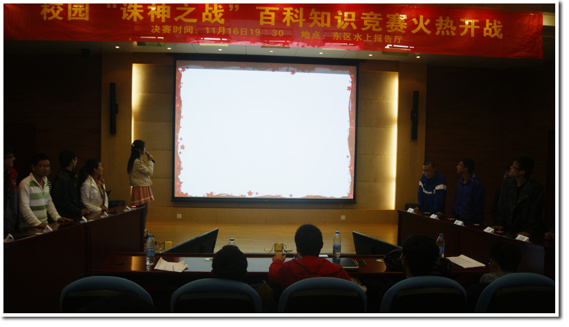 11月10日下午,由火灾、核院、生院、微尺度、人文、管院六院研究生会联合举办的大型校园百科知识竞赛活动“诛神之战”初赛在东西区分别拉开帷幕,现场场面火爆。
