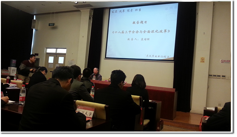 然后,由中国经济体制改革研究会副秘书长袁绪程研究员作题为《十八届三中全会与全面深化改革》的主题报告。他特别强调了十八届三中全会将市场经济在资源分配中的作用由基础性改为决定性对于国家经济体制改革的重大指导意义。与此同时,他还指出,在实现经济体制的公平公正过程中,我们一定要将产权制度和用途管制区分开来,并且这两个方面同等重要,必须双管齐下才能建立起健康健全的经济体制。就科技创新而言,他提到,我们在创新的过程中要勇于承担风险,不能只看到短视的功利。