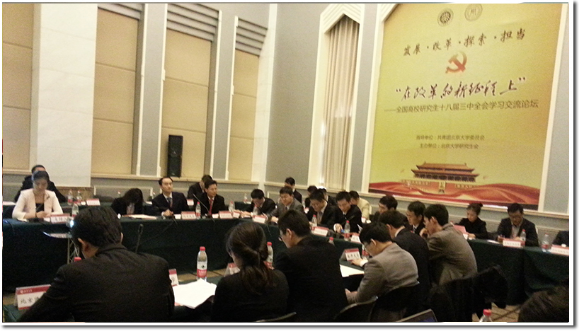 2013年11月16日,“在改革的新征程上”---全国高校研究生十八届三中全会学习交流论坛在北京大学隆重召开。来自全国二十多所高校的研究生会代表出席了本次会议。