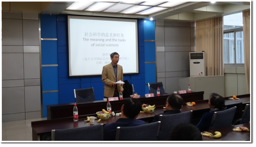 接着,唐世平教授紧紧围绕“社会科学的意义与任务”为主题,详尽地为我们讲解了社会科学的意义、社会科学的“科学”所在,社会科学与自然科学的区别以及什么是好的社会科学。他指出“社会科学旨在促进社会的进步、生活质量的提高和人类的解放”、“社会科学也是科学”、“搞社会科学的人要懂一点自然科学的基础知识,搞自然科学的人要懂一点社会科学的基础知识”等等精彩内容。此外,唐教授还向同学们介绍了他的研究领域,并向在场的同学推荐了很多优秀的图书。唐教授睿智的思维、风趣的讲解赢得同学的阵阵喝彩。