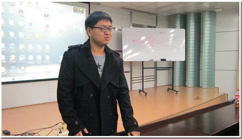 宣传赞助组副组长刘东阳对于目前拉赞助进展进行汇报,前期工作是在与策划组沟通后对项目进行初步预算,通过电话邮件方式联系部分商家,以及亲自与东西区附近的商家进行沟通联络,并向项目组成员分享了经验。