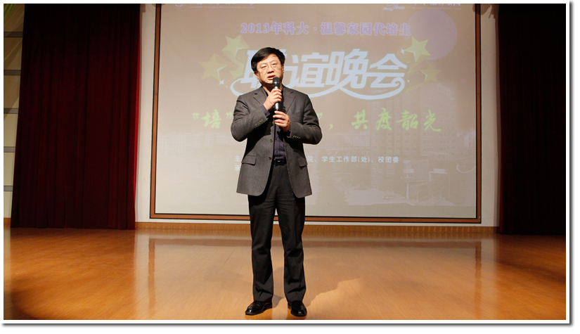 在激情火爆的开场舞之后,晚会正式拉开了帷幕。许武书记首先发表了讲话,他说代培生同样是科大的校友,是科大关心并引以为傲的,虽然代培生在科大只有一年的时间,但是他希望,代培生能够学有所成,充实并愉快地享受科大生活。校领导的关心和爱护赢得了在场所有人的掌声,让代培生倍受鼓舞与感动。