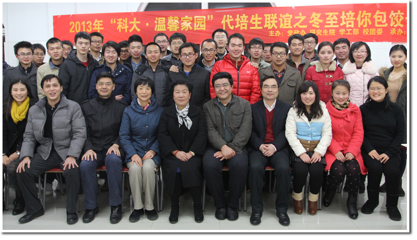 冬至前夕,为进一步加强代培生同学间的沟通,老师们和代培生同学代表欢聚在西区教工食堂,一边包饺子一边交流代培生的学习与生活情况。老师们希望代培生同学在科大的一年里愉快地学习和生活。代培生同学也表示,身在科大一年,心念科大一辈子,科大给予他们的将成为最美好的回忆。老师和同学们一起包饺子,吃饺子,其乐融融,温暖整个冬天。