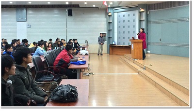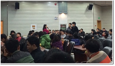 讲座于晚7点正式开始,活动现场吸引了近三百多位科大学子。由于长年在外企工作,叶老师对于外企文化有着深刻的理解。结合自己的切身经历,叶老师从如何开始准备找寻职业、具备怎样素质的大学生会受企业面试官的青睐、职场新人须知及职场经验智慧分享等角度进行了讲解。同学们细心认真地听取了叶老师的演讲,不时报以热烈的掌声。