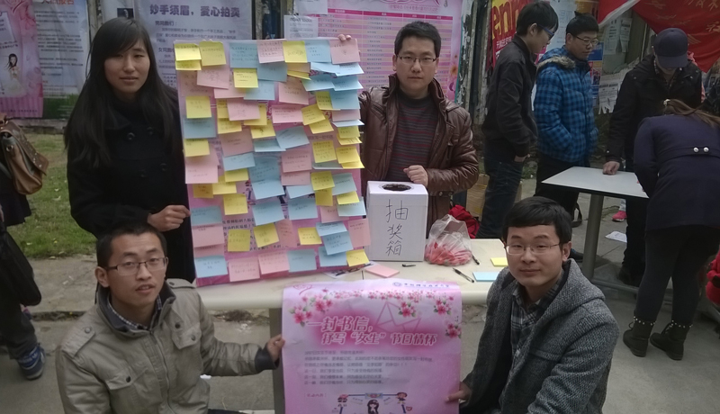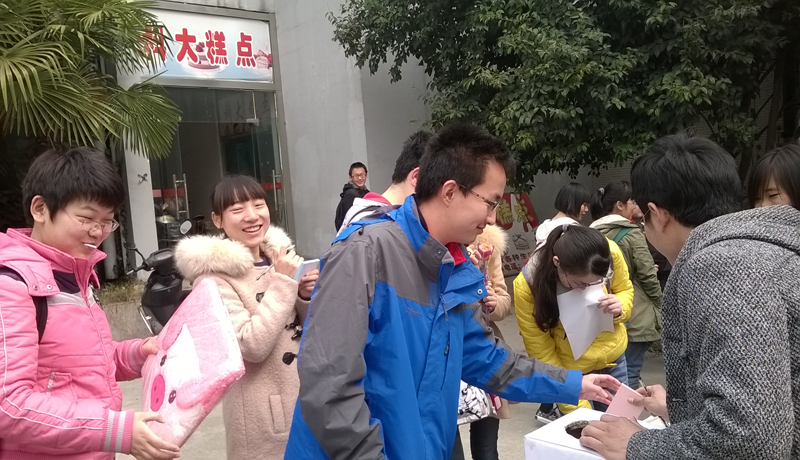 本次活动参与对象可以是男生,也可以是女生,活动以抒写祝福、展示祝愿墙、送精美礼品、抽奖的形式展开。为此活动现场赢得了同学们的积极参与。