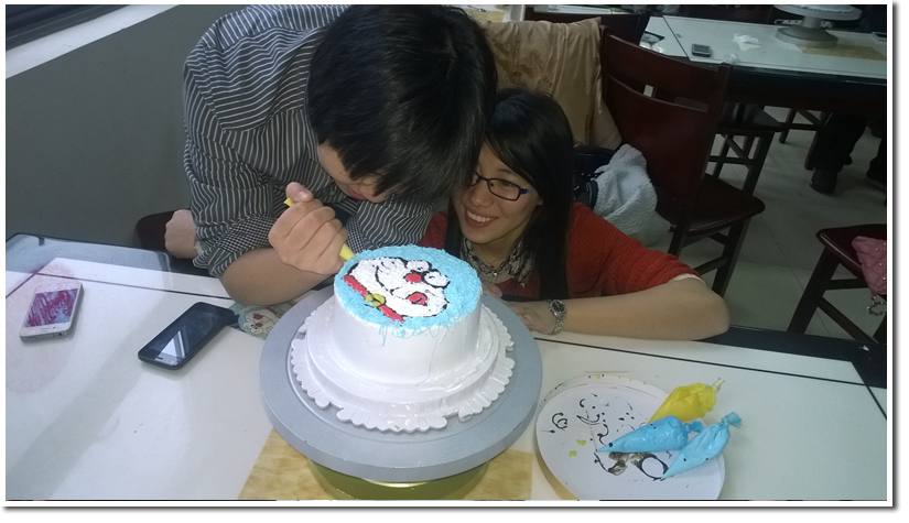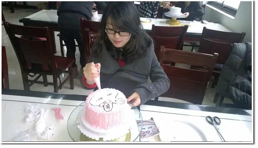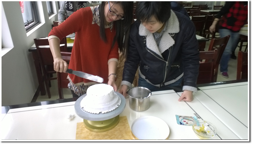 大家纷动手,并发挥自己的创意,创作着属于自己的专属蛋糕。