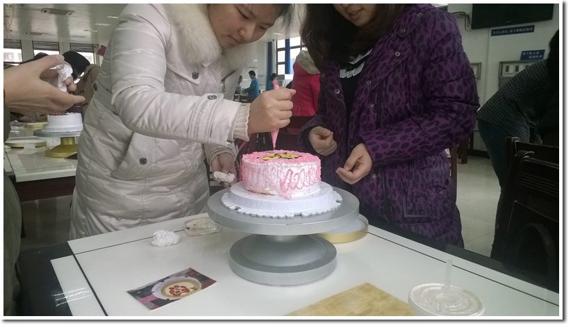 清晨,工作人员早早来到食堂,提前布置好活动现场。随后,妹子们踏着晨曦纷纷到来,活动于8:30正式开始。在蛋糕的诱惑面前,经验的缺乏丝毫没有影响大家动手的热情,还没等蛋糕师示范讲解,女生们已经纷纷挽起袖子,开始了DIY之旅。