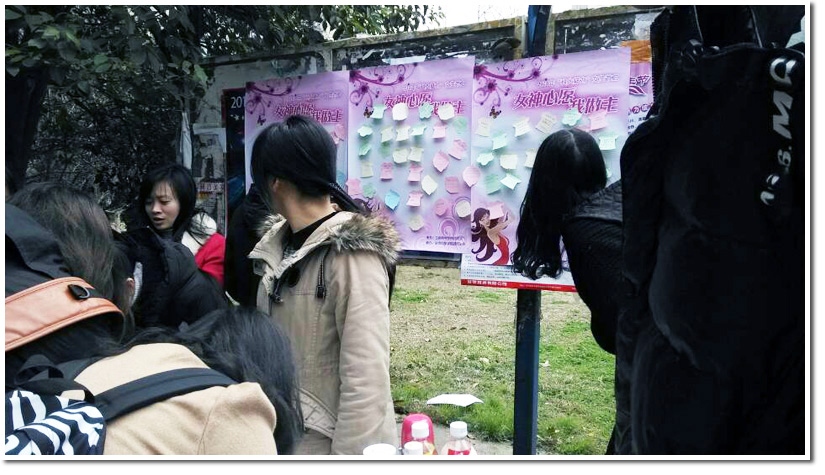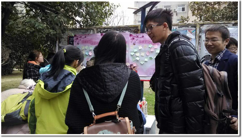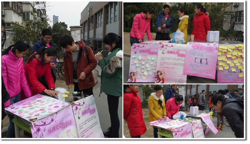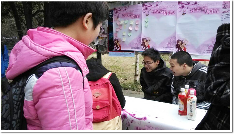 此次活动除了女生写心愿纸活动以外,同时工作人员给写心愿的女生送上小小的礼物,这代表着对科大女生的深深祝福;也耐心的帮助男生寻找他心中女神,愿能成就一段段美丽的缘分。