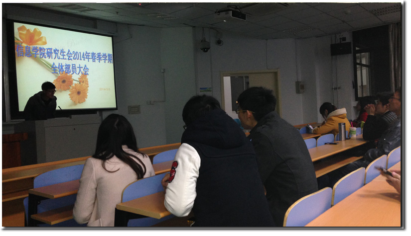 3月9日晚,信息科学技术学院研究生会春季招干大会在3B115教室隆重召开。现场,主席团、各部门部长副部长以及春招全体新干部参加了此会议。此次大会的主要目的是为了让新成员了解研究生会的相关情况,以及加强各个部门之间的交流,增强研会内部的凝聚力。