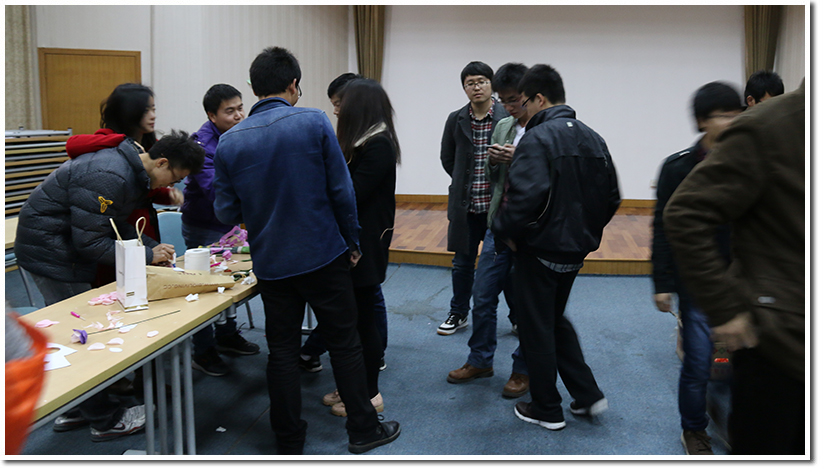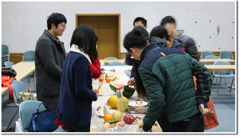 在欢声笑语中,心灵手巧的核院女生们为大家做了鲜美可口的水果拼盘,男生折出五颜六色的玫瑰花送给女生。同时在共同协作、相互理解的过程中共同续写着核院同学的独特魅力。