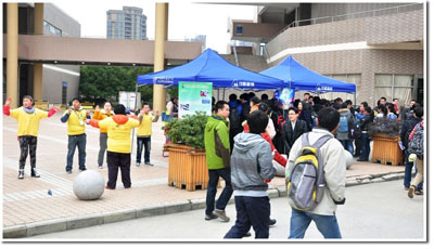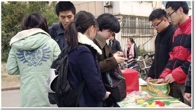 春风轻拂,阳光灿烂, 3月7日女生节期间,科大一年一度的“科大魅力”女生节系列活动再次如火如荼地开展起来。中午时分,在西区活动中心广场与芳华园研究生食堂,举行了以“情系你我,与爱同行”为主题的爱心义卖活动。这次活动将女生节这一具有现代气息的节日与传统的慈善公益活动结合起来,在为科大女生们送上一份节日厚礼的同时,也在宣传女性慈善,并为合肥“春芽”日间照料站的特殊儿童们募集善款。