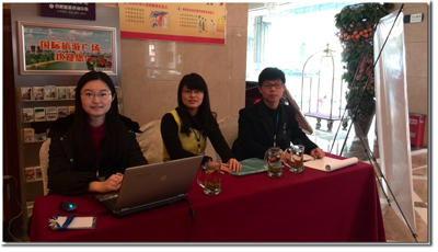 参会单位来自全国各地,12日起信息学院研究生会就有同学前往就业办,通过电话同参会单位联系,确认其参会形成。13日全天,在就业办老师的安排下,同学们在江南春酒店接待了来自全国各地的企业代表。同学们热情的服务和受到了就业办老师和前来报到的参会代表们的一致肯定。