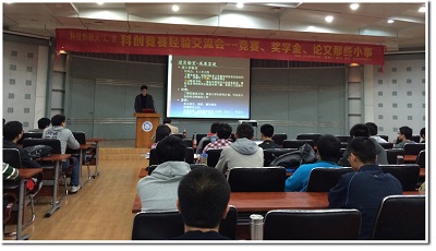 3月26日晚上,第四届科技创新大汇堂子活动之“科创竞赛经验交流会”在西活二楼学术报告厅圆满落幕。本次活动由校团委、信息学院分团委主办,信息学院研究生会承办。活动开始前,陆续到达现场的同学们有序地落座。当晚发表演讲的三位同学分别是:卢昊、卢薇以及左元。
