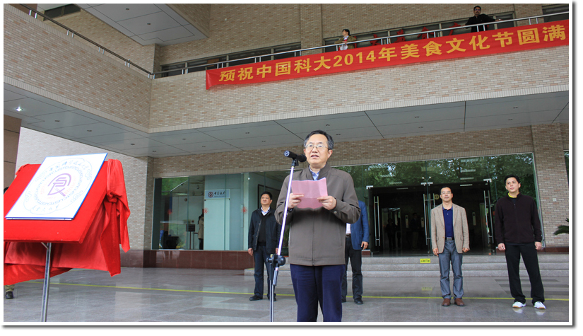 今年是食神大赛十周年生日。借此契机,由饮食服务集团和校团委主办、后勤团总支和校研究生会承办,举办了中国科学技术大学首届美食文化节。开幕式上,首先由副校长周先意、党委副书记蒋一共同为首届美食文化节LOGO揭幕。极具特色与内涵的LOGO将成为后续美食文化节的重要标识,也将成为科大文化的一部分不断传承下去。