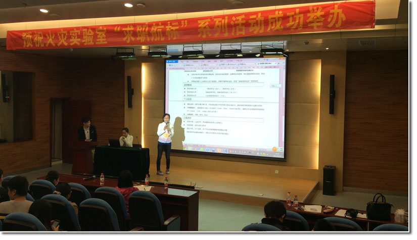 在自我展示环节,各位应聘者根据前期投放的简历对自己进行1分钟时间的自我介绍。值得一提的是,在活动进行中还踊跃出了现场投放简历的同学,激发了观众的热情。而且选手们的表现也丝毫不弱,比如张阳树同学,将自己在研究生期间从事过的科研工作,学生工作,个人经历和感悟等讲的头头是道,深深折服了现场的评委与观众。