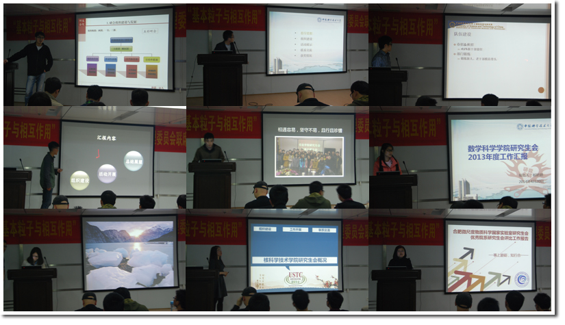评审答辩一开始,各院系研究生会的负责人按照抽签顺序依次进行了ppt展示和陈述,通过对2013年度工作的全面梳理、总结,从组织建设、工作开展、联系交流等方面进行了详细的介绍,随后回答了评委提问。