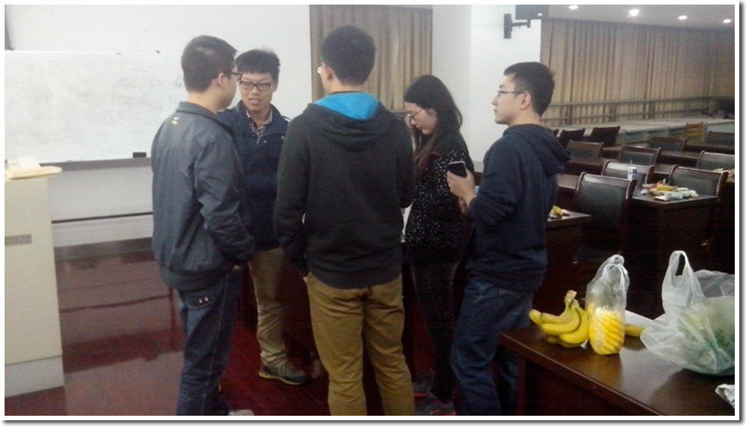 游戏环节结束后,大家开始一边享用丰富的水果,一边就研会活动、科大生活、学术研究等多方面话题展开了讨论。21:00,茶话会到达尾声,与会人员合影留念。