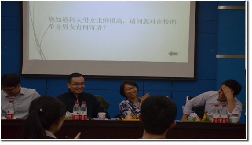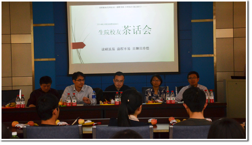 随着时间的悄然走过,我们进入了最后一个环节“且聊且珍惜”。同学们踊跃提问,校友们也给予了深刻而详尽的回答。就我们迷惑的感情、就业、科研、求学、时间管理、出国等问题,展开了系列讨论。校友们以自己切身体验以及身边的案例耐心解答了同学们心中的困惑。