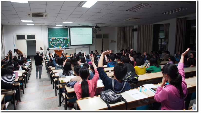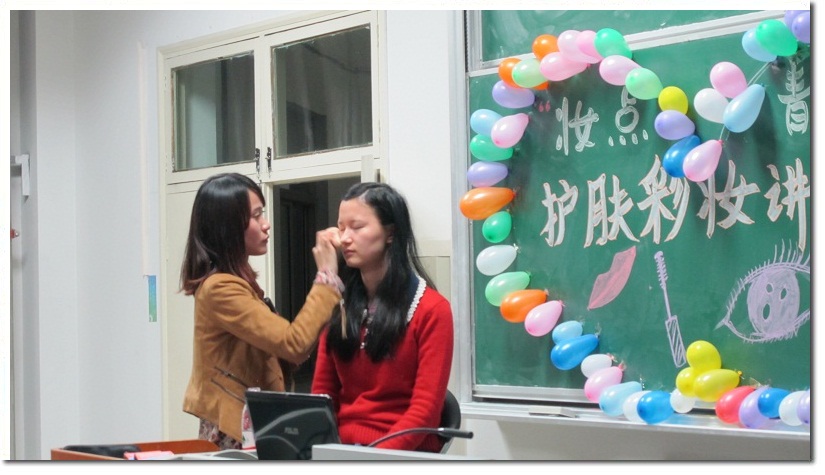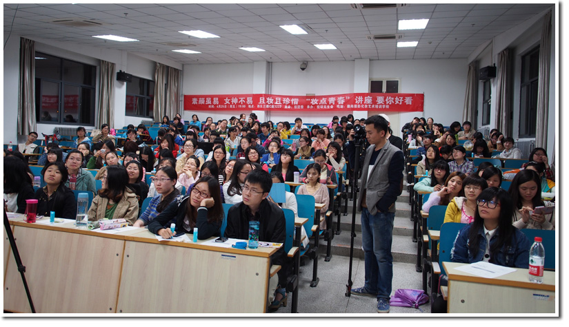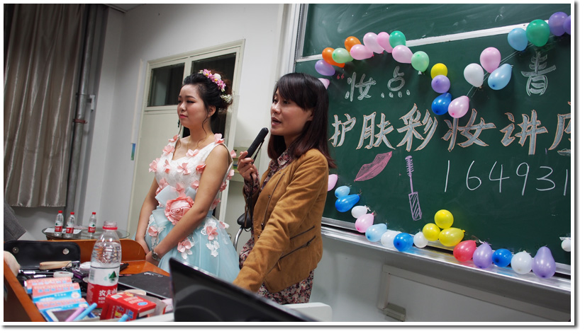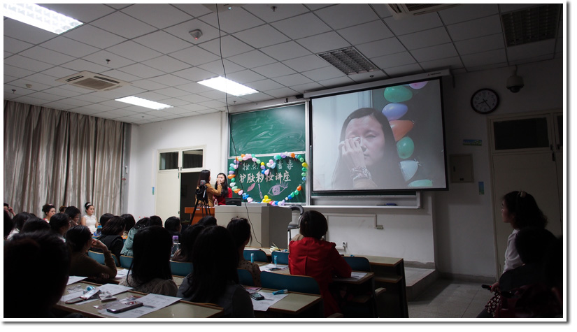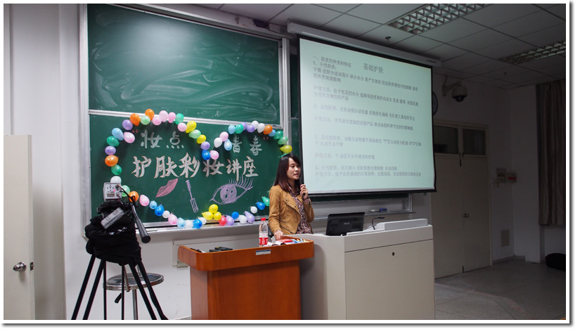 4月25日晚19:00,“妆点青春”护肤彩妆讲座在西区三教C3222教室顺利举办。为丰富学生生活,进一步提升科大女生魅力,本次讲座特别邀请了徽尚摄影化妆学校的资深老师,为现场近200名学生传授日常生活中护肤知识以及彩妆技巧。本次活动得到了学生们的热烈响应,现场十分火爆。