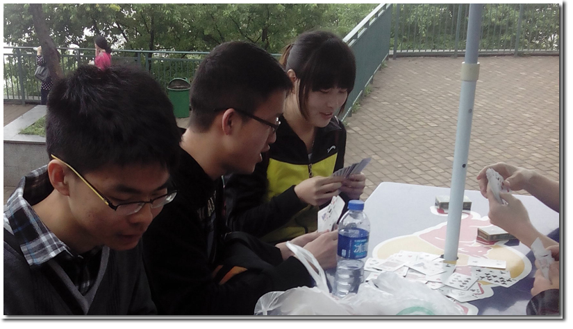 中午的时候,大家到达了山顶。此时大家都饥肠辘辘,开始拿出事先分发的食物、零食开始午餐。在此期间,很多部员开始玩起的扑克游戏,例如斗地主、掼蛋等。现场,大家分享着喜悦,每个人的脸上都挂满的笑容。