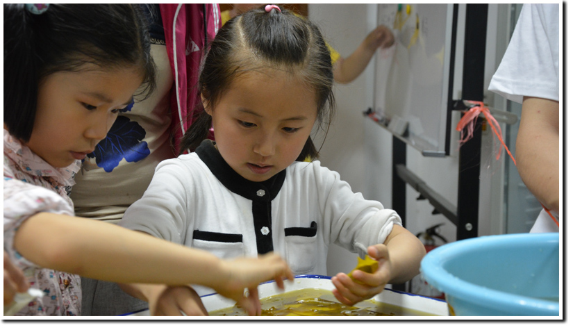由生命学院本科生志愿者进行的标本展示和叶脉书签制作同样让小朋友们兴高采烈。