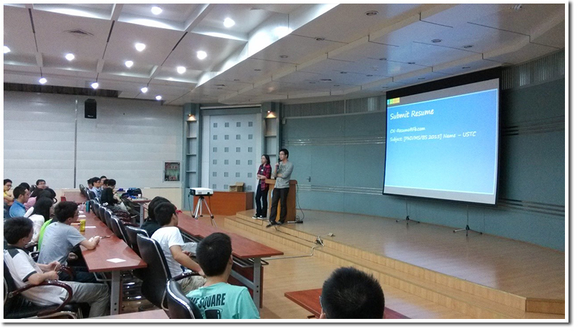 为促进同学了解国外公司的研发状况和招聘制度,同时加强我校与国际巨头公司的合作,计算机学院研究生会于5月23日晚在西区学术报告厅主办了Facebook报告会。这是Facebook公司第一次来到科大作报告。我们非常荣幸地邀请到了两位在美国Facebook公司工作的两位工程师:王美宏先生和袁林女士,为同学们介绍了Facebook的研发技术、公司文化以及国外IT公司面试的技巧。