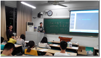 然后,信院主席张恒结合自己作为去年项目负责人的亲身经历提出了几点建议。他首先对实验区、竞答区的细节提出了要求,希望竞答区的同学能随机应变,根据现场具体情况调整获奖方案。然后他指出在活动现场要安排人员专门负责人流引导,避免活动现场拥塞情况,同时要做好交接工作。最后他还强调各个小组之间要加强沟通。