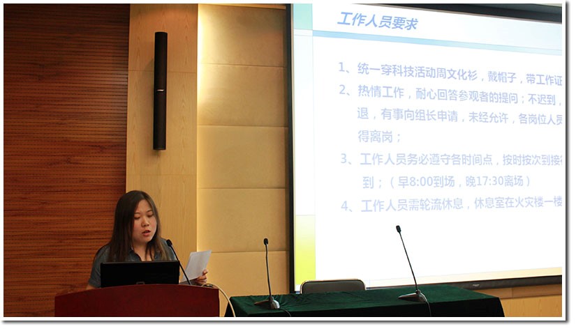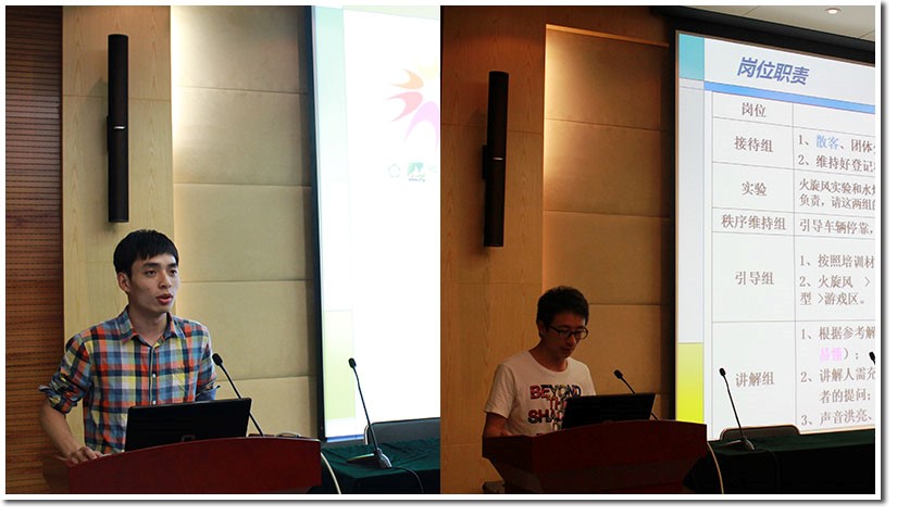 其次,火灾实验室研究生会主席吴志博和2013年“科技活动周”负责人张阳树分别对志愿者们的工作职责以及活动的细节进行了补充说明。