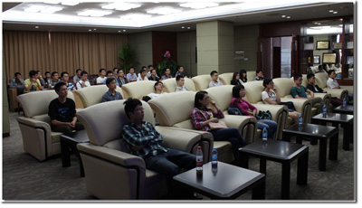 大约25分钟后,同学们就来到了目的地。科大讯飞的人力资源部门的同志热情的接待了同学们。科大讯飞方面的负责人带领同学们来到了报告厅,他们先播放了科大讯飞的宣传片,同学们看的都非常认真,深深的被科大讯飞取得骄人的成绩所震撼。