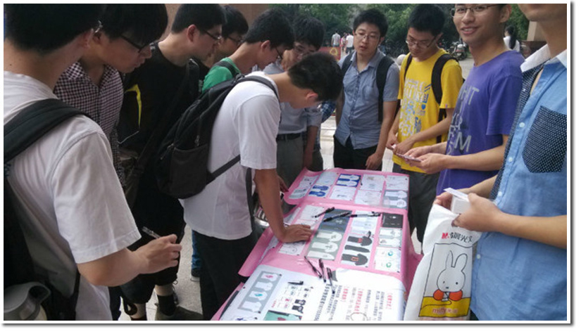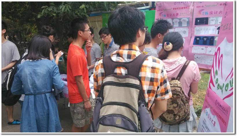 “不说再见”,“see you”2014毕业纪念系列活动之T恤设计大赛现场投票环节于2014年5月24日、25日分别在东区师生活动中心广场、西区本科生食堂如期成功举行。