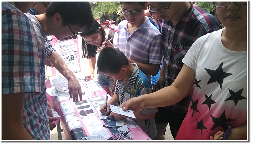T恤设计大赛活动面向全校2014届所有毕业生举办,通过海报、X展架、BBS、人人、微博等宣传方式进行征稿,活动前期从4月23日到5月16日,收集到毕业班衫、寝室文化衫、实验室衫、情侣衫等25件作品,并且在人人、微博上对作品进行了展示和投票,网络投票人数总计665人,参与火爆。