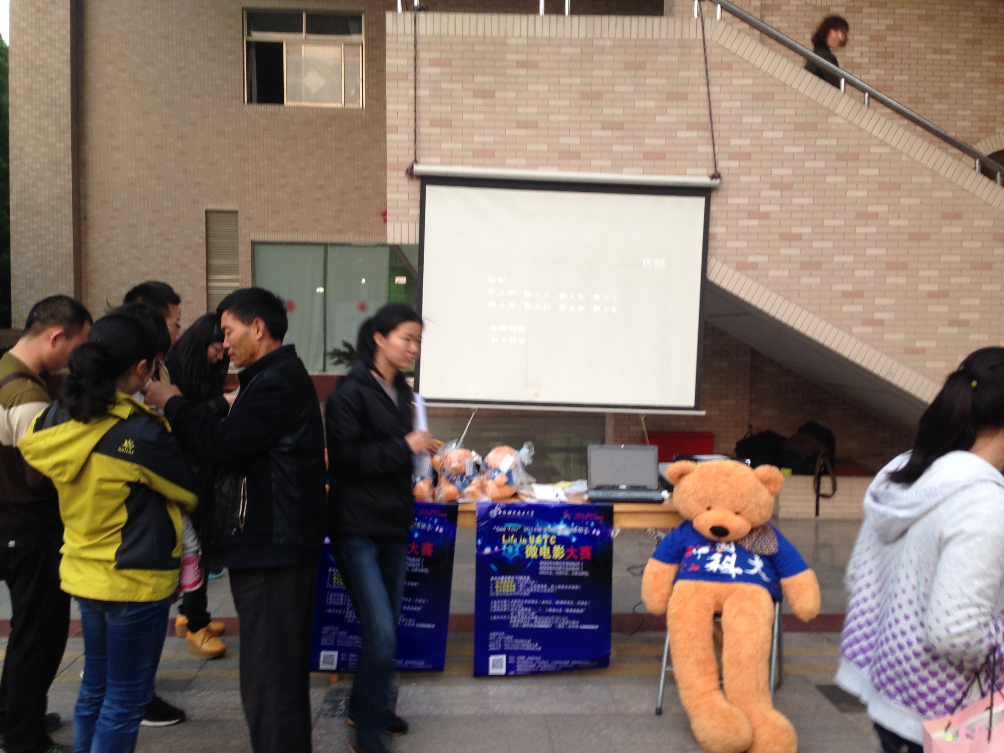 Life in USTC 微电影大赛活动于4月中旬开始筹备,至今已有一个半月的时间。活动主要分为前期宣传,中期作品征集以及后期作品评审与公示。在4.22第一轮宣传中,我们在东区活动中心广场对去年的作品进行展播,吸引了很多同学驻足观看。本次大赛征集两类作品:DV类微电影和图片文字类微电影。到达截止日期时,一共征集了16件作品。