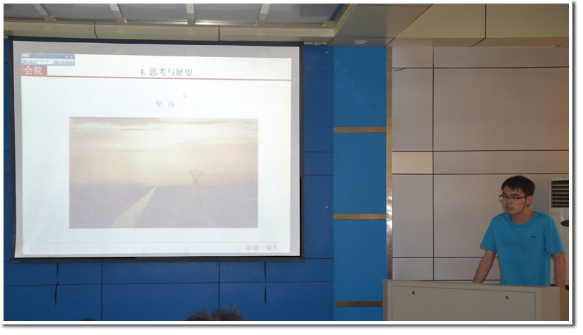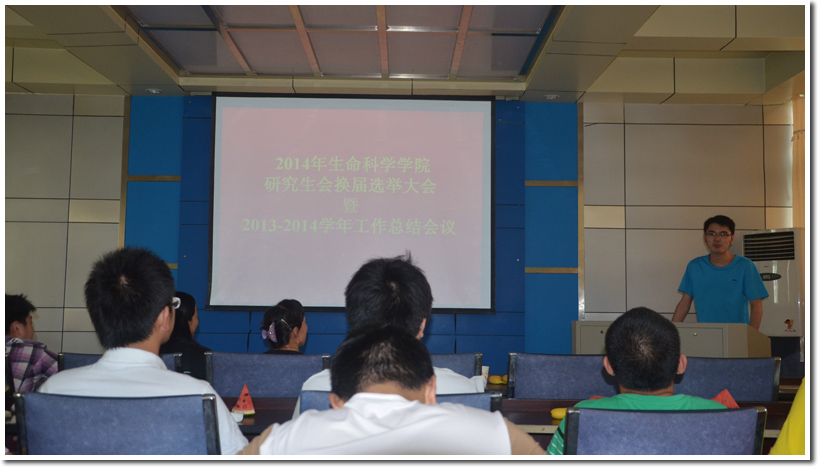 首先现任生命学院研究生会主席黄超对2013-2014学年生命学院研究生会的工作进行了总结,回顾了在过去一年里我院研会的组织发展、承办的丰富多彩的活动以及取得的优秀成绩,总结了目前研究生会组织架构及活动举办的现状,强调研究生会的工作需要干部团结协作并坚持不懈,最后黄超主席还就自己在研究生会工作两年的收获和体会做了总结,表示在研究生会的工作让他认清自己、学会应对压力、认识到立场的重要性以及学会了铭记和感恩等个人体会。