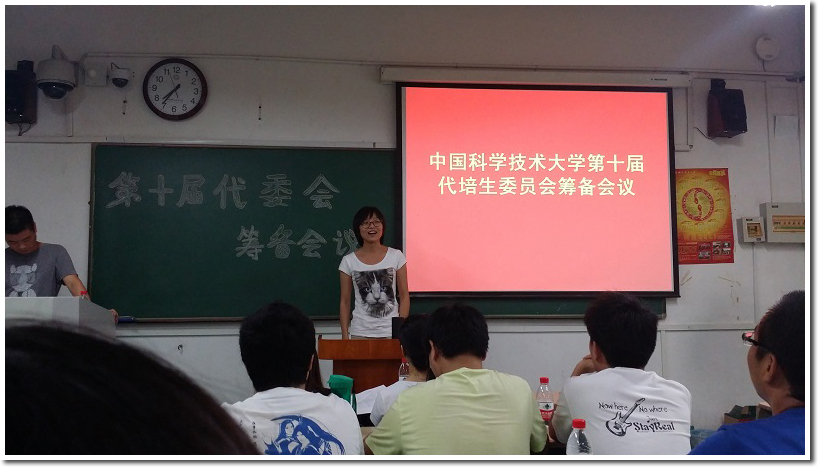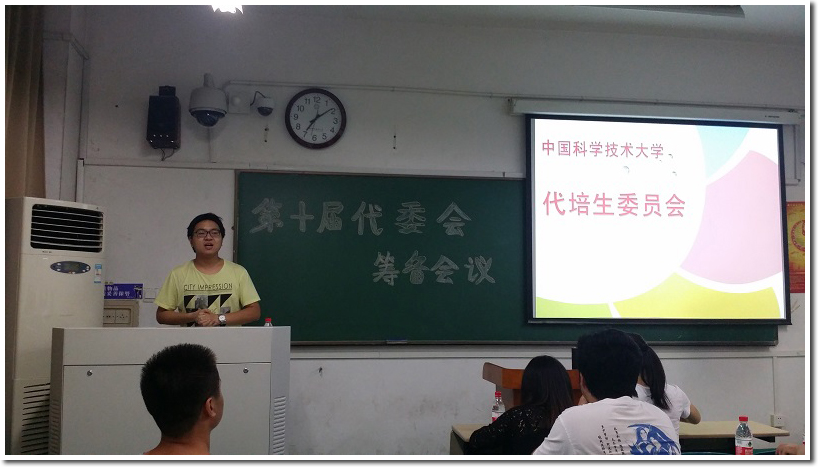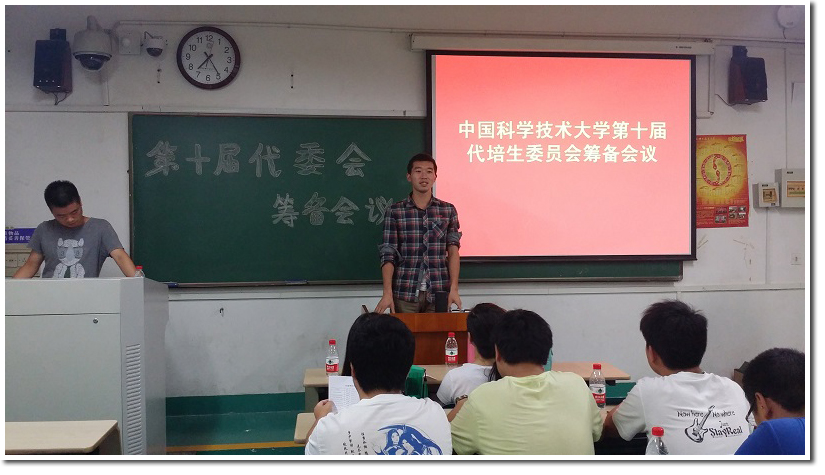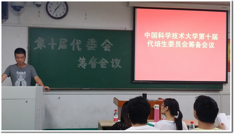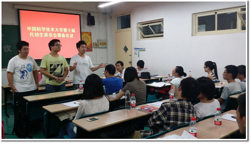 9月27日晚,中国科学技术大学第十届代培生委员会筹备会议在西区3A202教室顺利召开。校研究生会常务副主席胡剑杨、项目跟进副主席祝曹祥、外联工作部部长张博、代委会筹建项目组工作人员以及来自各代培所的代委会委员候选人参加了会议。此次会议由代委会筹建项目组成员周腾蛟主持。