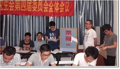 接下来,会议审议通过了审议通过校研究生联合会四届六次全委会增补委员选举办法,并以无记名投票的方式选举增补了王鑫、孙松等10位同学为校研究生联合会第四届委员会委员。